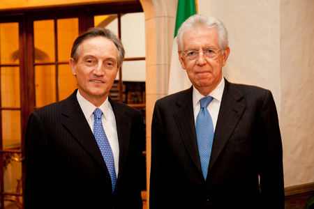 Prime Minister of Italy Mario Monti with Italian Ambassador Claudio Bisogniero at Villa Firenze, Washington, DC.